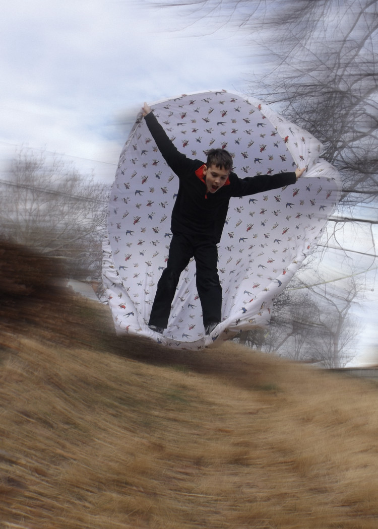The class' final assignment concerned motion blur. Similar to the "painting" project, this took a bit more manual work than I'd thought it would (using a "Path Blur" rather than a simple directional one), but the results were worth it, if a bit stylized. (Not to say that's a bad thing, but I'm pretty sure there is no way the blurring directions in the photo actually make sense.) I decided to go with an image of my brother Oob "Wind surfing" (a fun Zoomlian pastime on windier days), which already lends itself to some strong photo opportunities even without modifications. I think having a strong starting point can be just as essential as anything added on top.